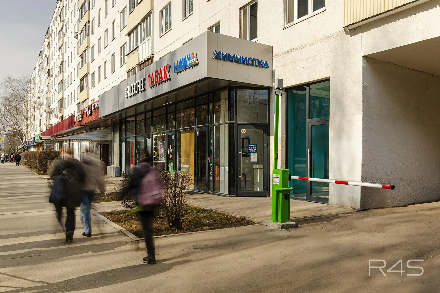 Отдельный вход с фасада, витринное остекление, высокие потолки.