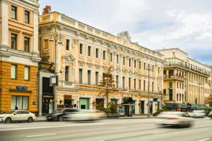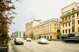 Тверская — это главная улица Москвы. Именно она является магнитом притяжения каждодневного, делового и туристического трафика столицы, а на участке от Пушкинской до Охотного ряда его концентрация достигает максимальных величин. Историческое здание легендарного гастронома «Елисеевский» на углу Тверской улицы и Козицкого переулка. Открыт купцом Григорием Елисеевым в 1901 году, сразу же стал центром общественного внимания за роскошные интерьеры, экзотические продовольственные товары и редкие вина.