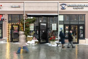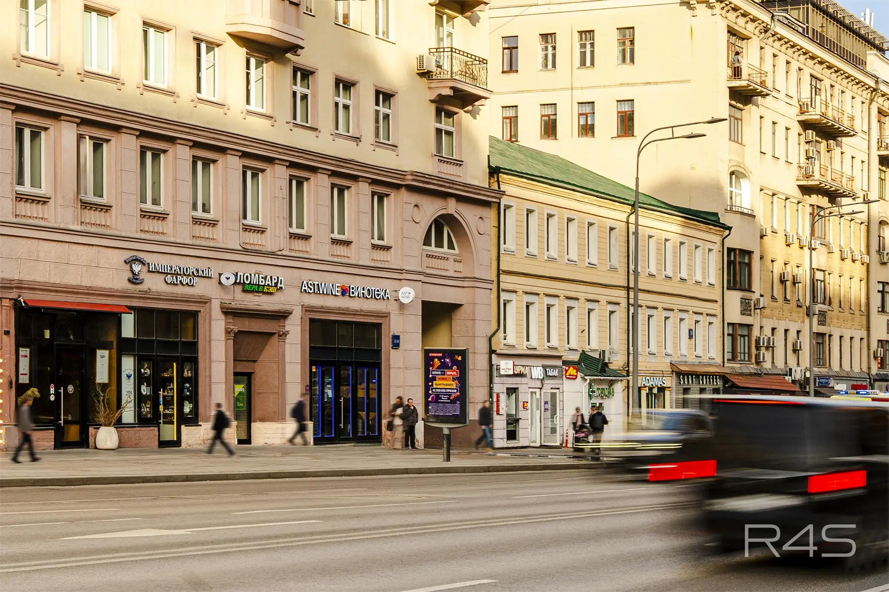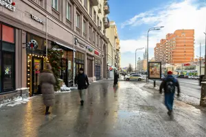 Интенсивный пешеходный и автомобильный трафик вдоль помещений.