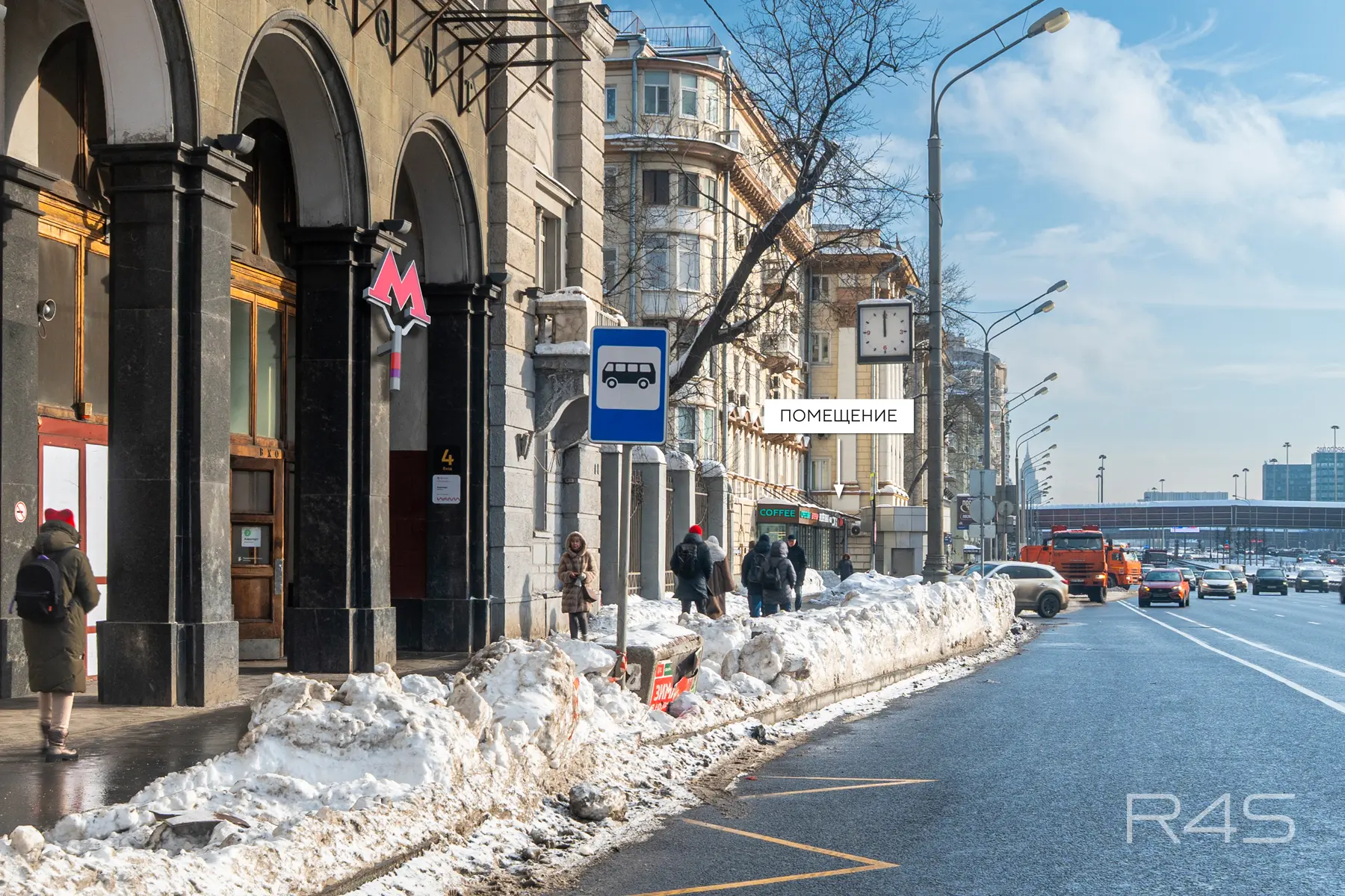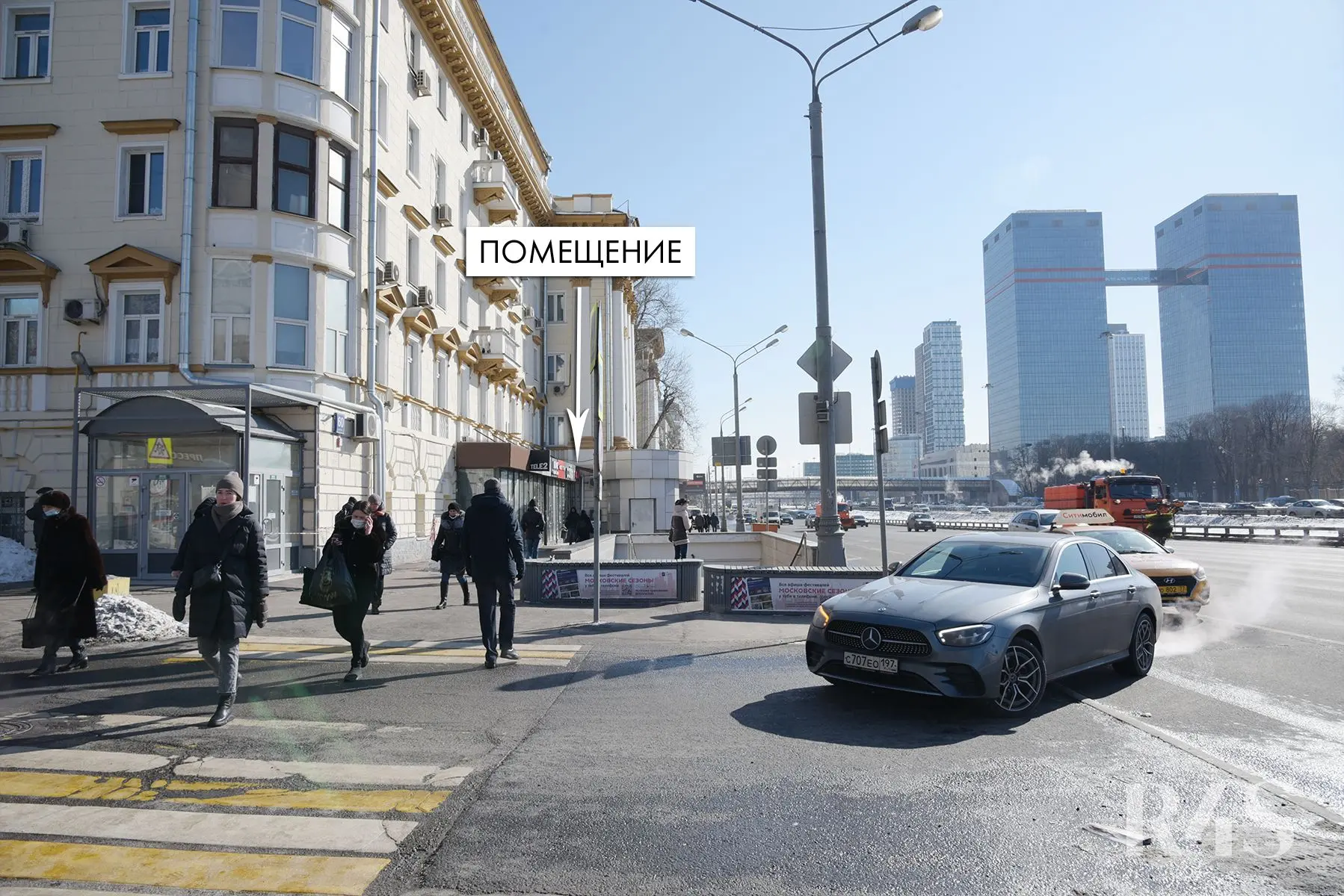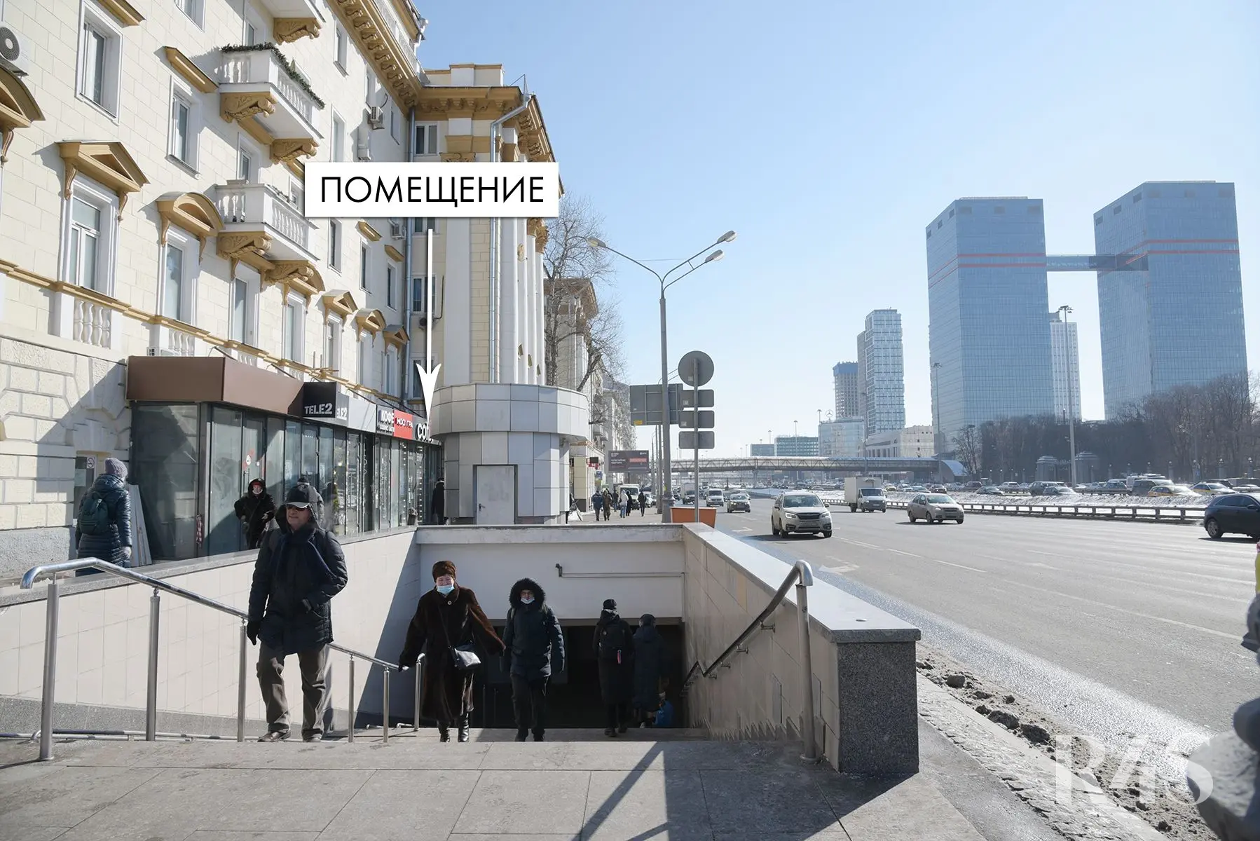 Помещения расположены в непосредственной близости от ст.метро «Аэропорт», на первой фасадной линии Ленинградского проспекта. Рядом находится наземный пешеходный переход через проспект. Местоположение характеризуется сверхинтенсивным пешеходным и автомобильным трафиком.