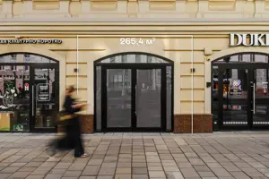 Торговые помещения расположены на первой фасадной линии Новослободской улицы, в 70 метрах от станций метро «Менделеевская» и «Новослободская».